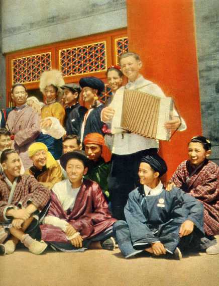 课余的时候,塔塔尔族学员亚法斯拉起手风琴,同学们跟着聚在一起,唱起歌来。这些来自各地,包括34种民族的学员们,永远是这样愉快地学习和生活在祖国团结、友爱的大家庭里。