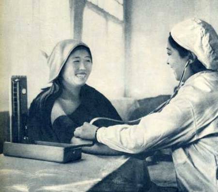 保健站的建立和科学的接生方法给母亲和孩子带来幸福。这是赵秀兰和她的小宝宝。