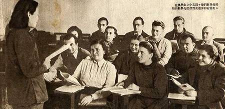 留学生在上中文课。他们对学校采用的教学方法认为是进步和有效的。