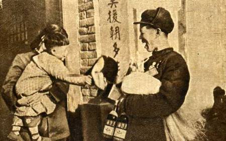 石景山发电厂特等劳模刘德珍,曾出席全国劳动模范代表会议。解放前,每月工薪只能买一袋面,现在每月工薪能买七袋面。过春节时,他买了很多年货,他的妻子和女儿正在门口高兴地迎接他。