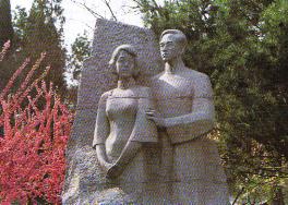 高君宇、石评梅墓碑,位于陶然亭公园湖畔。