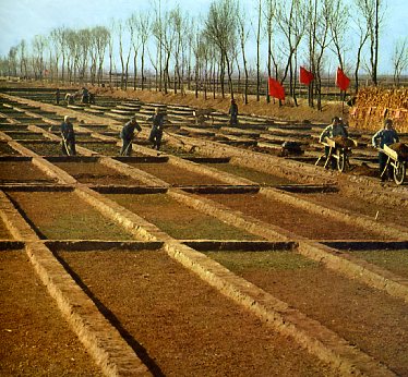 农村的红卫兵是革命的闯将,也是生产的先锋。这是他们在植树,绿化村庄。