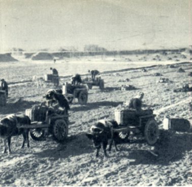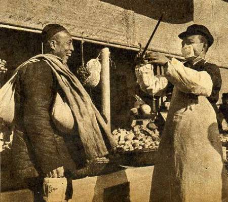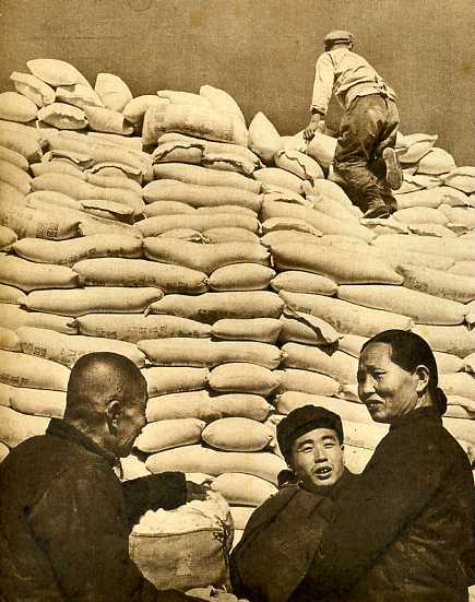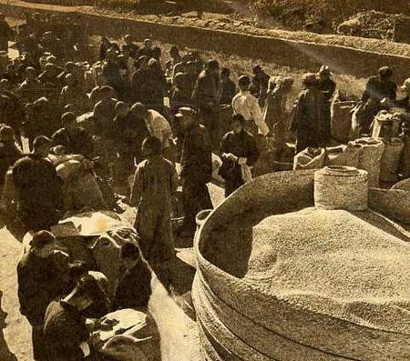 张家湾市场上堆积如山的面粉。农民卖出了大量的棉花后正在计划买进面粉和其它工业日用品。