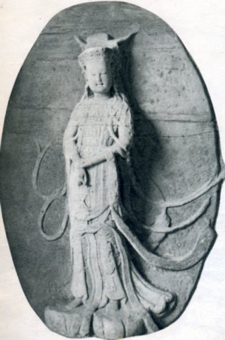 北山佛湾心神车窟内观音的上部,宋代(公元960-1127年)石刻。全像高219公分。