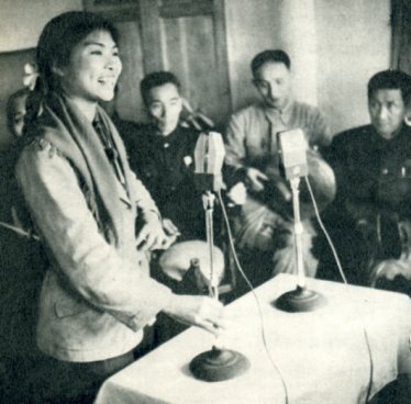 县广播站邀请的福建省闽剧实验剧团在为全县听众演唱。