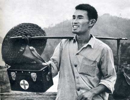 坚持为山区贫下中农服务的赤脚医生张鼎。