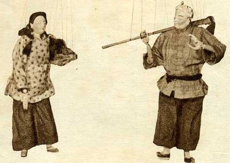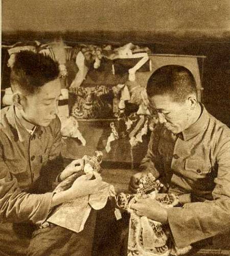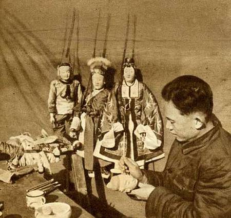每个木偶戏的表演者都能演出多种的剧目,他们正在给木偶穿戴起不同的服饰。