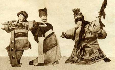 木偶艺人表演宋代故事“大战陆文龙”的情景。