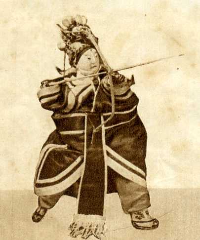 描写宋朝英雄岳飞的戏剧“岳飞传”之一幕。这是青年时代的岳飞正在提笔写字。