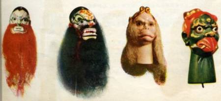 已故著名艺人江加走雕刻的木偶头像。(之一)