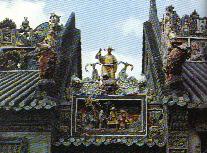 在广州市中山八路。又称陈氏书院。始建于清光绪十六年(1890年),建成于光绪二十年。是广州著名的宗祠建筑。共三进五间,九堂六院,面积1万多平方米。它以布局严整、气势雄伟、装饰精巧、堂皇富丽著称。既体现中国建筑的传统形式,又富有广东地方的工艺装饰特点。建筑物上下内外都有木雕、石雕、砖雕、泥塑、石湾陶塑、铁铸工艺等装饰。特别是在琉璃瓦脊的塑造上,更广罗古典故事题材,博览地方风物琳琅满目,美不胜收。中轴三进,是建筑的主体部分,高旷宽大,气宇轩昂。是广东现存祠宇中最完整、最宏伟的一个艺术建筑群。