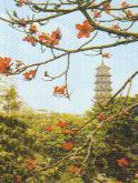 在六榕寺内。为砖木结构,初建于南朝梁大同三年(537年)。公元10世纪时毁于火,北宋绍圣元年(1094年)重建,四年竣工。1980年全面维修时,塔壁发现印有北宋的砖铭。高57米,八角九级。每级皆有暗层,合共九级十七层,沿梯级右上左下。塔顶有元至正十八年(1358年)铸造的千佛铜柱,连上面的九霄盘、宝珠及下垂的铁链重5000公斤。由于塔形华丽壮观,宛如冲霄花柱,通称为花塔。