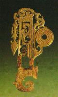 承盘高足玉杯—1983年广州象岗南越王墓出土,通高17厘米。有人认为是古人希图长生以承朝露的“承露盘”。
