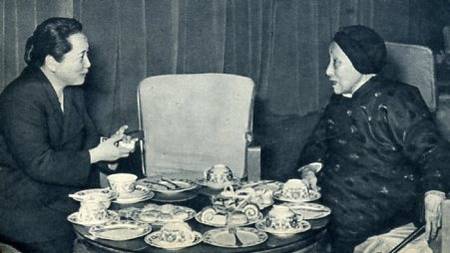 1958年在出席全国人民代表大会的时候,与宋庆龄副主席亲切交谈。