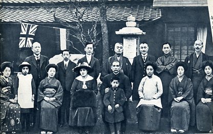 1916年在日本与孙中山、孙夫人宋庆龄等合影。后排左起第二人为廖仲恺,前排右起第三为何香凝,第四人为孙中山,第五人为宋庆龄,第七人为廖梦醒,孙中山前面为廖承志。