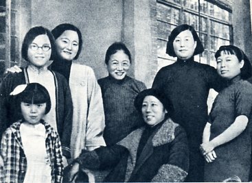 1937年在上海为慰劳抗日将士举办妇女慰劳会时,与史良(左二)、胡子婴(右一)等合影。坐着的是何香凝。