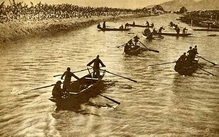 场员常常在休假日驾着农场里的木船,沿着这条小河划到市镇上去。