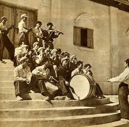 农场组织了业余的乐队,他们在休息时间练习各种歌曲,准备在周未晚会场演出。