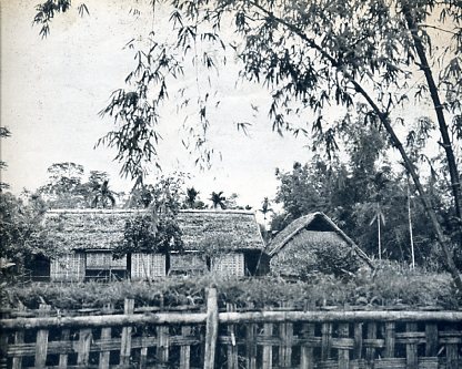 从木瓜树下望去,远处是一排整齐的宿舍。