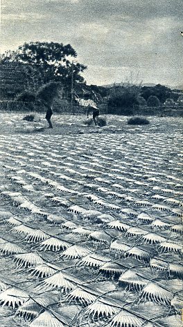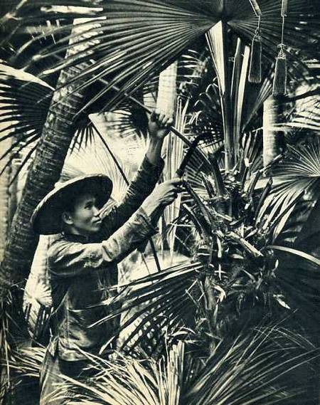 葵扇是蒲葵树叶制成的,以广东省新会县的出品最为有名。远在东晋时代(纪元317年至420年),广东就盛产葵扇。它一直是广大人民所普遍喜爱的日用品。(1953年)