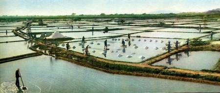 海丰沿海盛产食盐,1962产量超额完成国家计划11.49%。图为海丰汕尾盐场。