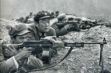 当地民兵在解放军煌帮助下,苦练杀敌本领。