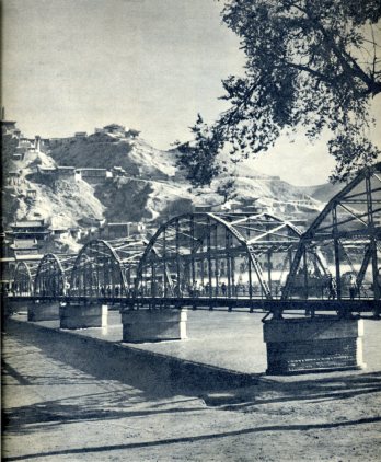 联接兰州市黄河两岸的原来只有一条破烂不堪的桥,现在已有九条铁路桥和公路桥。这是其中的包兰路大铁桥。