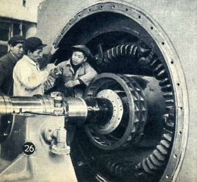 来自云南电厂的技工在安装兰州热电站的发电机。