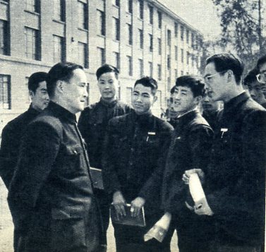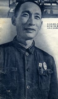 在大跃进中,兰州市出现了无数先进工作者。这是建筑业先进标兵杨万林,他领导的工作队已提前三年三个多月完成第二个五年计划(1958-1962)。他参加了在北京召开的全国“群英会”。
