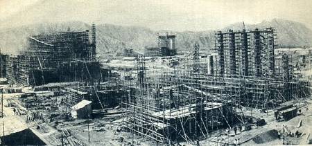 苏联帮助建设的兰州肥料厂正在紧张施工(1958)
