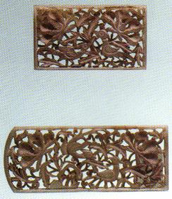 明中期 青玉花鸟纹带板。1955年兰州市上西园鼓泽墓出土。这是明代兵部尚书鼓泽夫人的玉带板,现存十八块。雕琢都很精细。