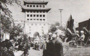 1949年8月25日,解放军向兰州发起总攻,经两天激烈战斗攻入城内。图为入城部队占领国民党西北统治中心—西北军政长官公署。