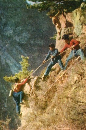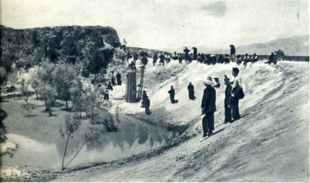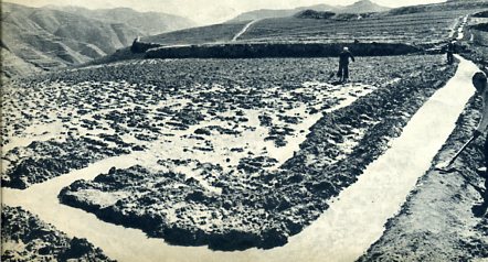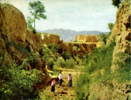 山地占全县面积95%的甘肃武山,经过全县人民几年来特别是大跃进和公社化以来的开发建设,已经改变了干旱、贫困的面貌。这是一条引水上山的灌溉渠道。