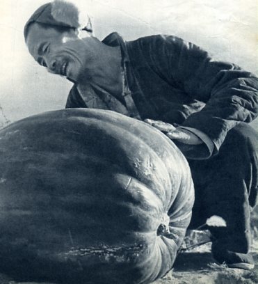 老农汪树在东梁山上种的南瓜,因为有河水灌溉,一个就有73斤重。