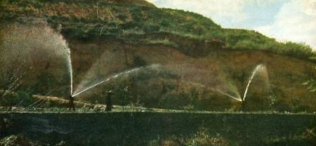 浇菜园的工作由人造雨代替了。象这样的降雨器,仅洛门公社东梁渠灌区就有好几百套。