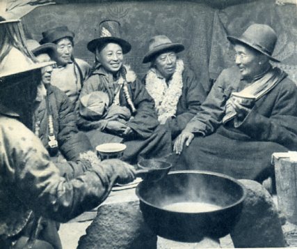 裕固族是我国人口较少的民族之一,只有3900人,1954年实行自治。他们原来住在甘肃的张掖、酒泉一带,后来迁到祁连山的北麓,过去他们一直游牧飘泊,人畜逐年减少,直到解放后才开始过着温饱的生活。裕固人民住的是羊毛编织的帐房,饮食以粮食为主、肉类为辅。他们信仰喇嘛教,妇女长于劳动,有时超过男子,女子到了结婚年龄,由家长为她戴上头面后,就有社交自由。多数女子招婿入赘,也有由父母作主出嫁。这几年受到新婚姻法的影响,出嫁的也逐渐实行婚姻自主了。