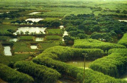 在鱼塘旁边种植甘蔗,很有利于生长。