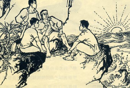 英雄船员登上荒岛后,党支委黄大瑶想起了毛主席的教导:“领导我们事业的核心是中国共产党。”他立即把党员组织起来,形成坚强的核心,战斗到底。