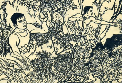 熊耀章和梁华保带领一些轻伤的同志,钻密林,披荆棘,才找到一点野果和淡水。但他们一口不吃,带回去让重伤和年纪较大的同志吃。