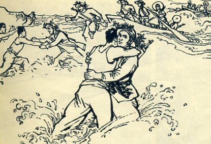 黄不三从昏迷中醒来,恳切地说:“别管我了,你们也负了伤,还是先游去吧!”熊耀章和许均瑞激动地说:“船长,我们两个都是共产党员,决不能丢下自己的阶级兄弟,有我们在,就有你在!”