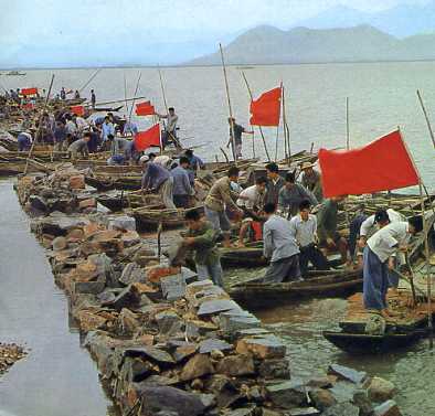 一九七0年修建的全长一千四百二十米的饶平县三百门拦海闸坝,坝内造田三万六千亩。