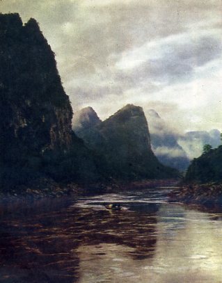 广西僮族人民居住的地区有三条大河:右江、左江、红水河。这是红水河上游景色。