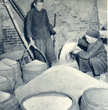 全家人都在农业社里各得其所,连老母亲(左)也帮助照顾下地妇女的孩子。