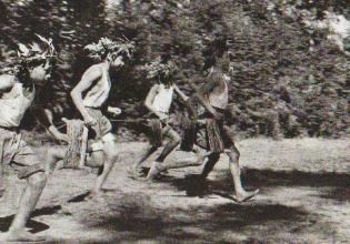 靖西县城郊公社亮表小学高年级的90多名壮族学生,利用课余时间,参加无线报务、话务、有线架设、话务通信等活动。他们在县、社武装部和驻军等通信兵的支持帮助下,很快地掌握了通信技术。图为进行收放线速度比赛。(摘自《民族画报》1979年第6期)
