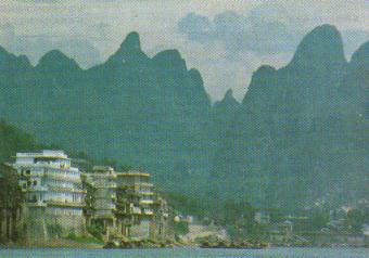 依山傍水的平乐县城。漓江至此,以下称桂江。
