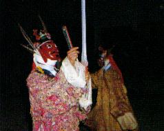 环江县毛难族木面舞。毛难族木面舞具有傩文化特征,每年农历五月五日的“庙节”时,由师公戴面具,穿法衣击腰鼓,载歌载舞进行祭神驱鬼活动。