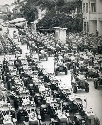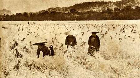 一天的劳动完毕了,僮族人民唱着山歌从田里走回家去。