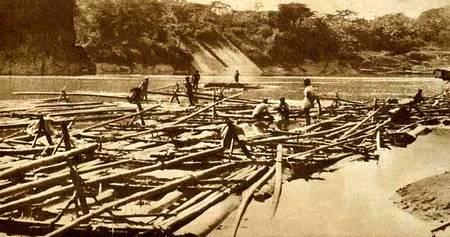僮族人民把他们的财富—龙潭地区的木材与竹竿顺着左江水流运输到各地出售。