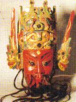 地戏面具。传说明朝初叶,朱元璋派兵征云南,曾在安顺建城屯兵。至今在安顺平坝的屯堡仍生活着与众不同的“屯堡人”,其衣饰尚存古风,甚至自称“大汉族”以区别满族和苗族。据说就是明代屯兵与南迁移民带来了古老的傩戏,并由“军傩”发展成地戏。但地戏与傩戏是有区别的。傩戏专为神鬼而用,地戏则以扮演“三国”、“杨家将”、“封神演义”等故事为主,以节日娱人为务。