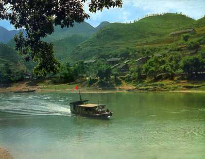 红军三渡赤水河的渡口——茅台渡口,河边的茅台镇是茅台酒的产地。